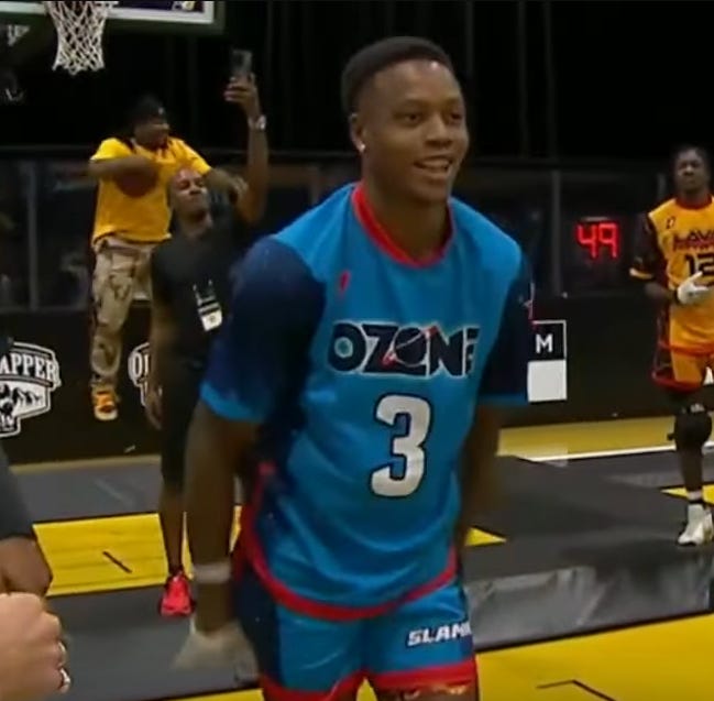 The man had an innate sense of the trampolines, knowing where to get the best bounce, where the opponent would be if he bounced there, and the most efficient route to the hoop from there.
